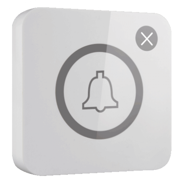 Die Ruftaste APE520C ist drahtlos und arbeitet über Funkfrequenz. Sie kann mit einem Klebe-Pad oder mit Schrauben befestigt werden.